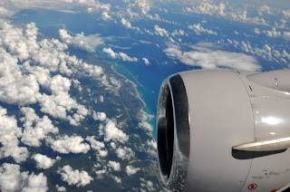Continental Airlines vuelo No. 882 Bogota - Houston a 35,000 pies de altura en un Boeing 737-700 sobrevolando el area del sur de Cancun y habiendo sido avisados por el comandante (pero no Marcos), de que en Houston estaba nevando. En solo hora y media cambiaria el panorama como se ve en la foto superior ya alineado para aterrizar. Increible, pero por el rumbo de las 4 PM, salio el sol en Houston haciendole el honor al dicho Texano que dice: "Si no te gusta el clima en Houston quedate 2 horas, va a cambiar."